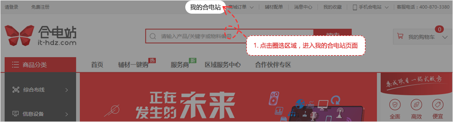 1.点击合电站首页顶部 “我的合电站”,进入我的合电站页面。